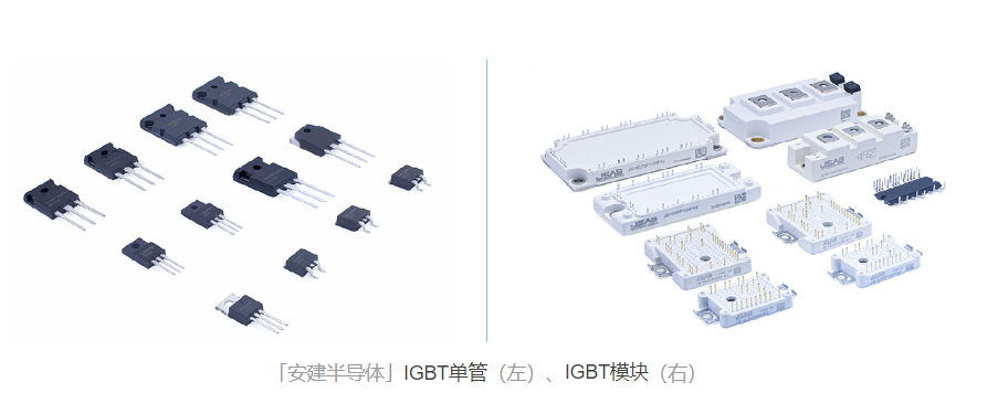 「安建半导体」对标的正是全球前八名的功率半导体企业,其专注于半导体功率器件的研发、设计和销售,是赋能高端芯片国产化的企业之一。功率半导体是电力设备的核心器件,其主要作用是为电力系统提供变频、变压、变流、电机推动和功率管理等功能。因此,所有的电力设备都需要用到半导体功率器件。目前,MOS管和IGBT是应用最广泛的功率器件,占比90%以上。这两者也是「安建半导体」的主要业务。